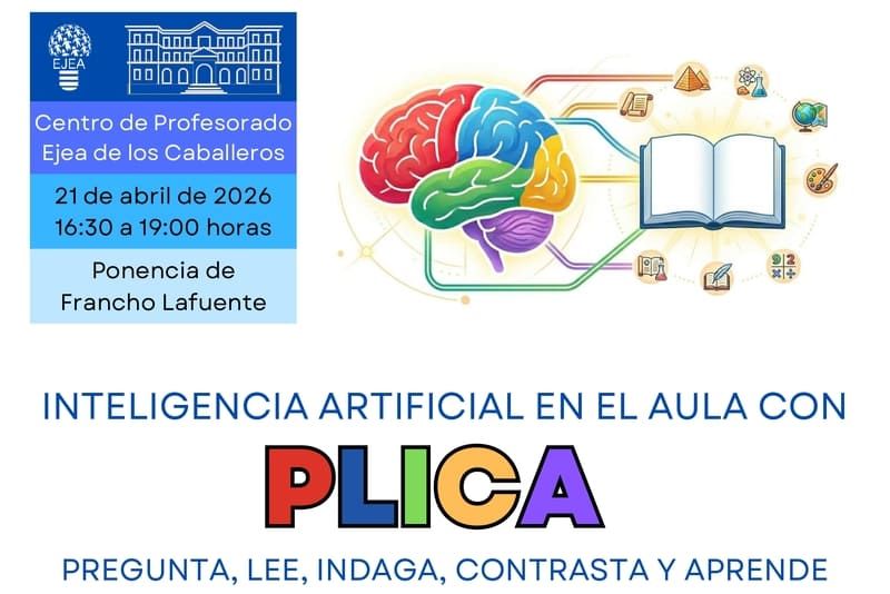 El experto Francho Lafuente, maestro en ejercicio y profesor de la Universidad de Zaragoza, impartirá esta jornada presencial sobre el método PLICA en el CP de Ejea el próximo día 21 de abril de 2026. Se trata de aprender a integrar la IA generativa en el proceso educativo, promoviendo en el alumnado un uso crítico, ético y responsable. La formación está dirigida al profesorado de todas las etapas educativas del ámbito de Ejea, y persigue los siguientes objetivos: Comprender los [...]